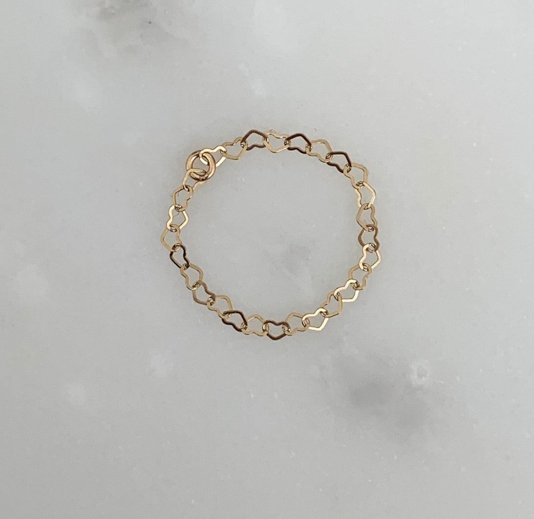 Fall in love with the perfect everyday statement. This ring features sleek, polished heart-shaped links in 18K Gold PVD over durable stainless steel—combining long-lasting shine with romantic charm. Whether stacked or worn solo, it adds a bold yet feminine touch to any look.