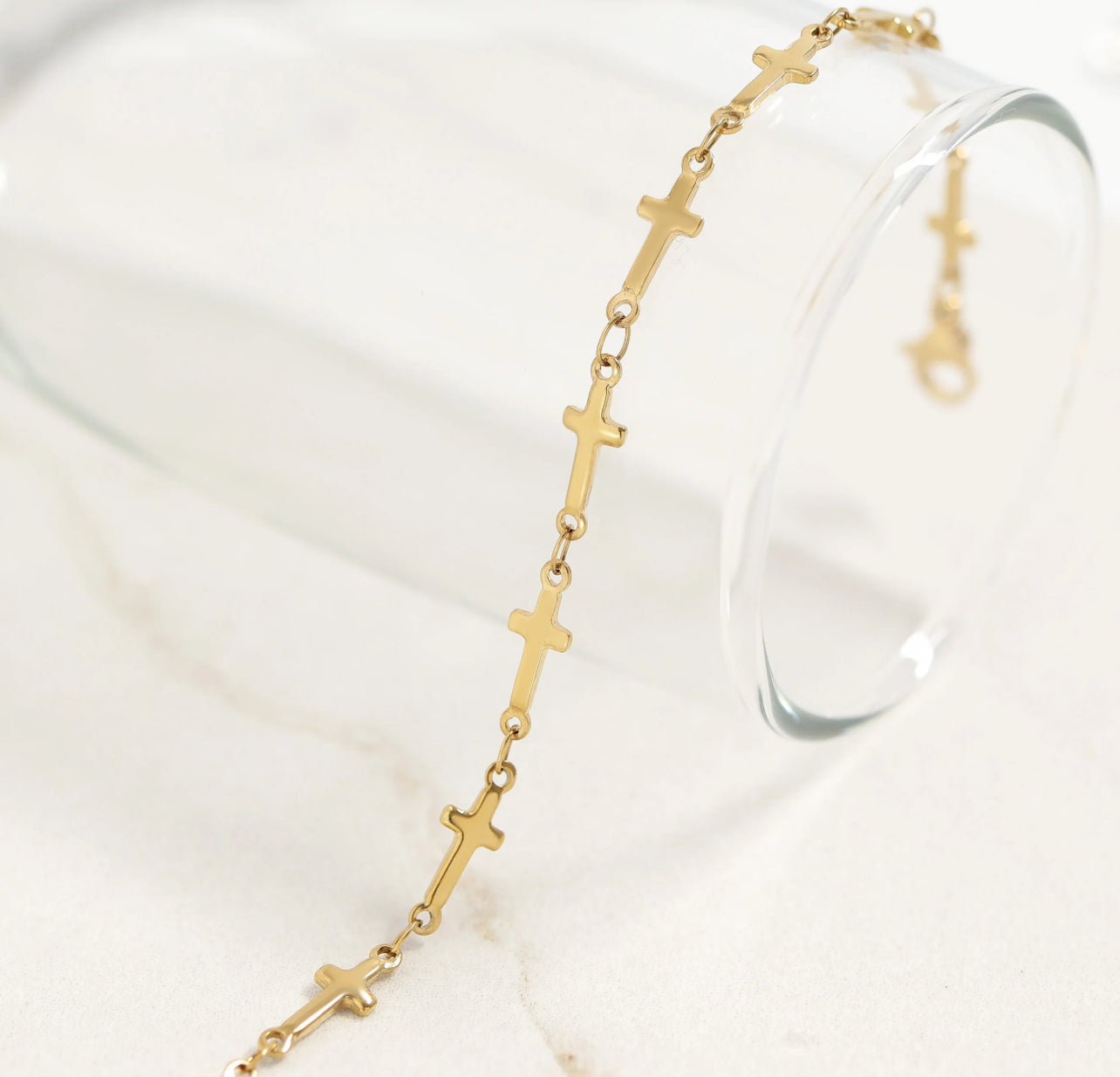 This 18K Gold PVD Stainless Steel Cross Chain Bracelet blends meaningful symbolism with everyday elegance. Featuring a sleek cross charm on a delicate gold chain, it’s a subtle yet powerful piece to wear alone or layer. Tarnish-resistant and thoughtfully designed to last.